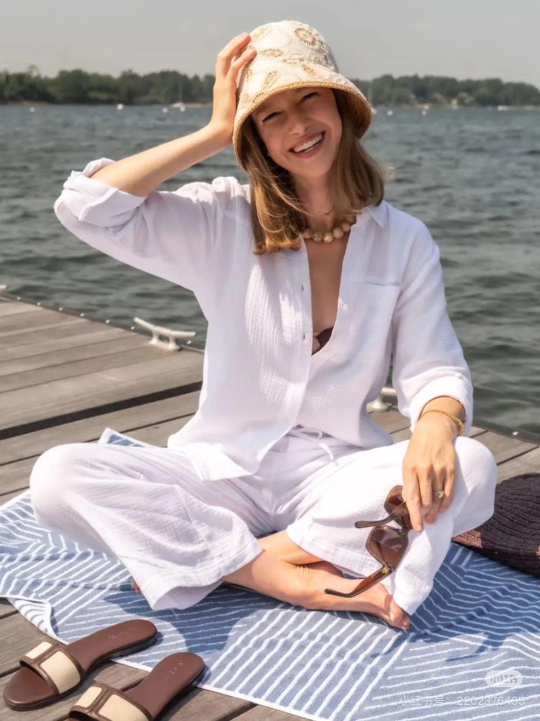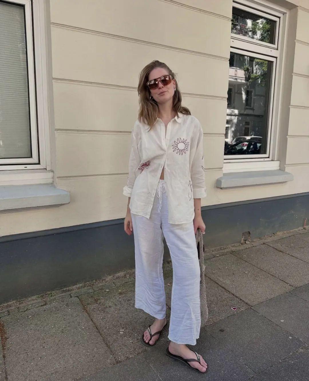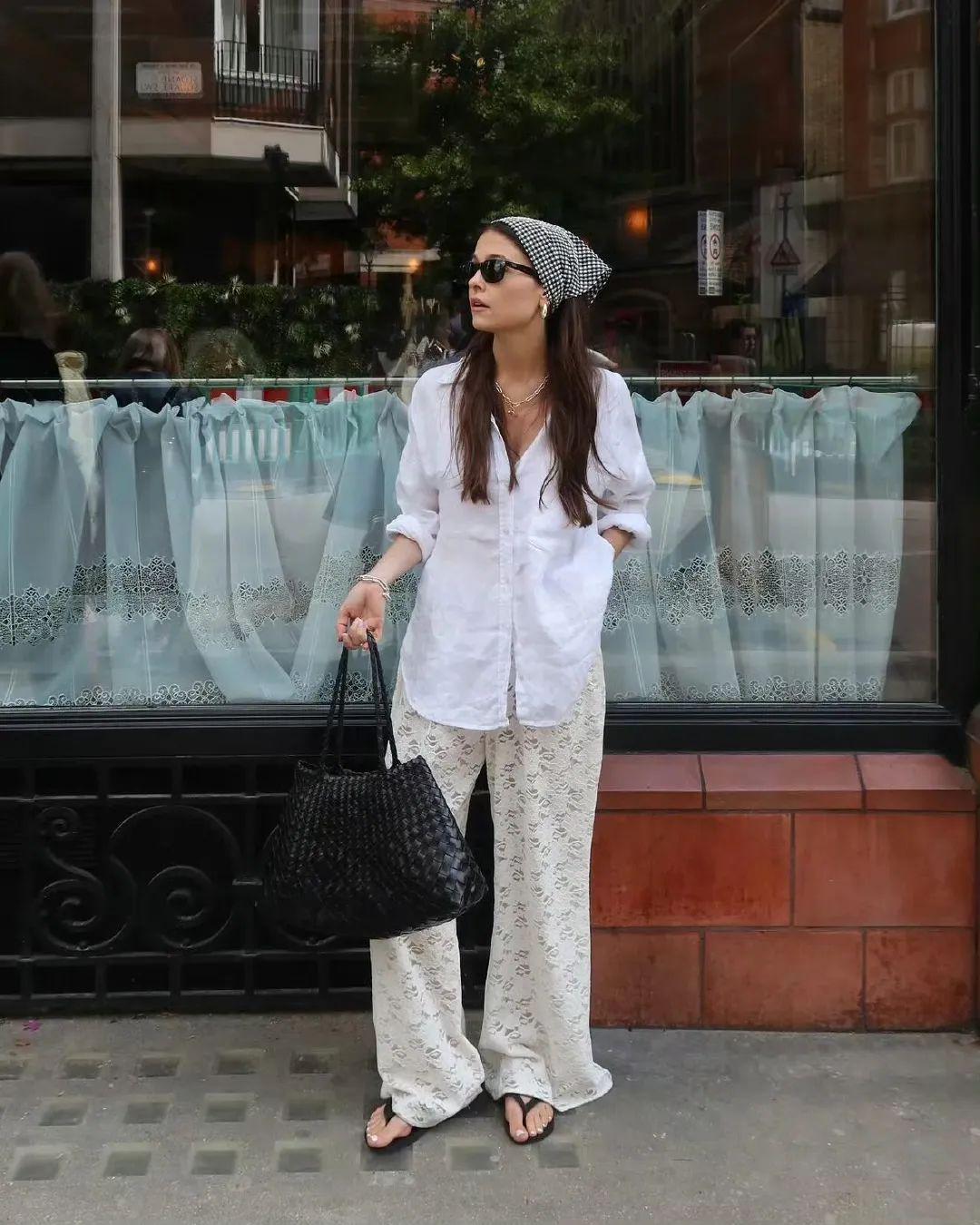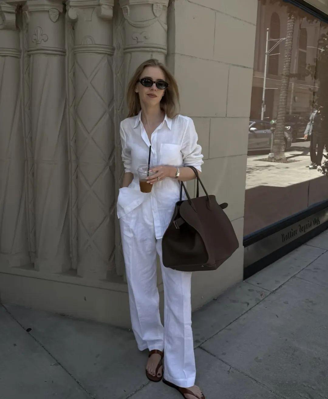 2. 白衬衫+白阔腿裤:all white穿法,高级不单调