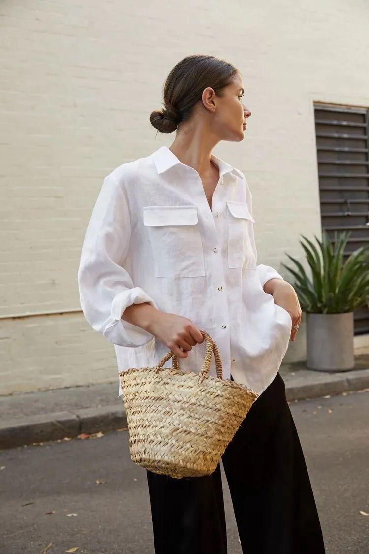 1. 白衬衫+黑阔腿裤:简约高级,通勤度假两开花